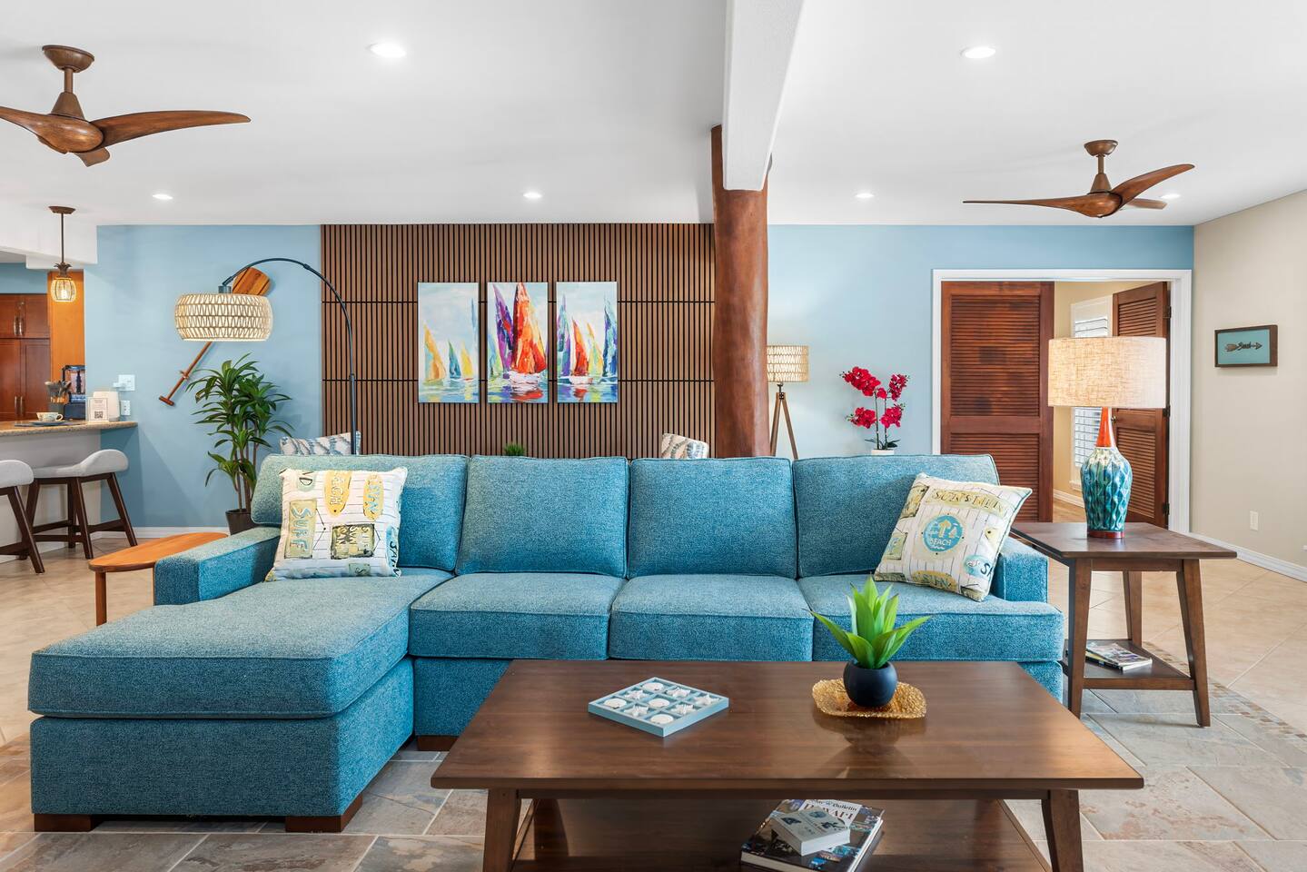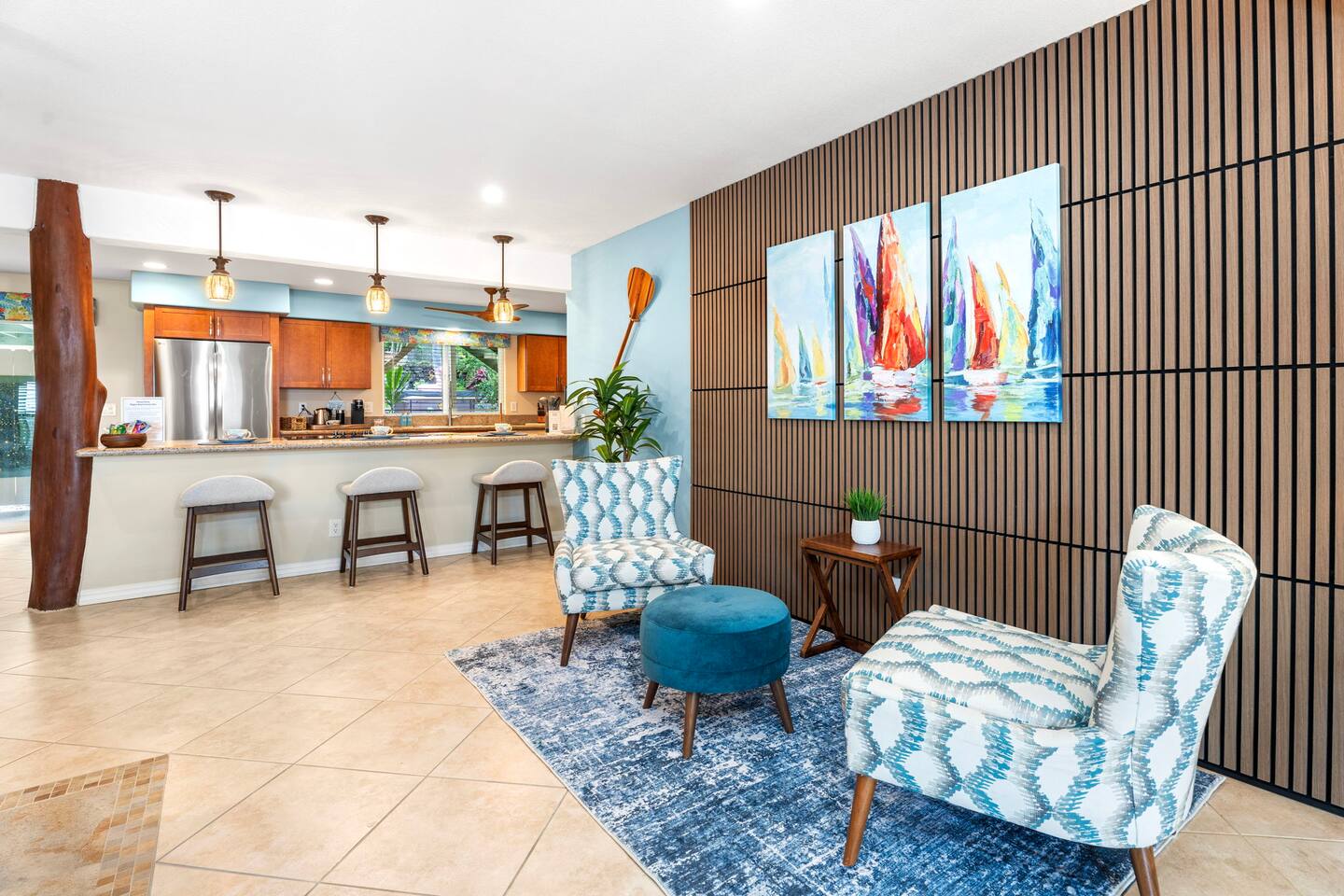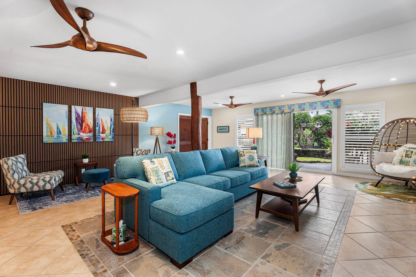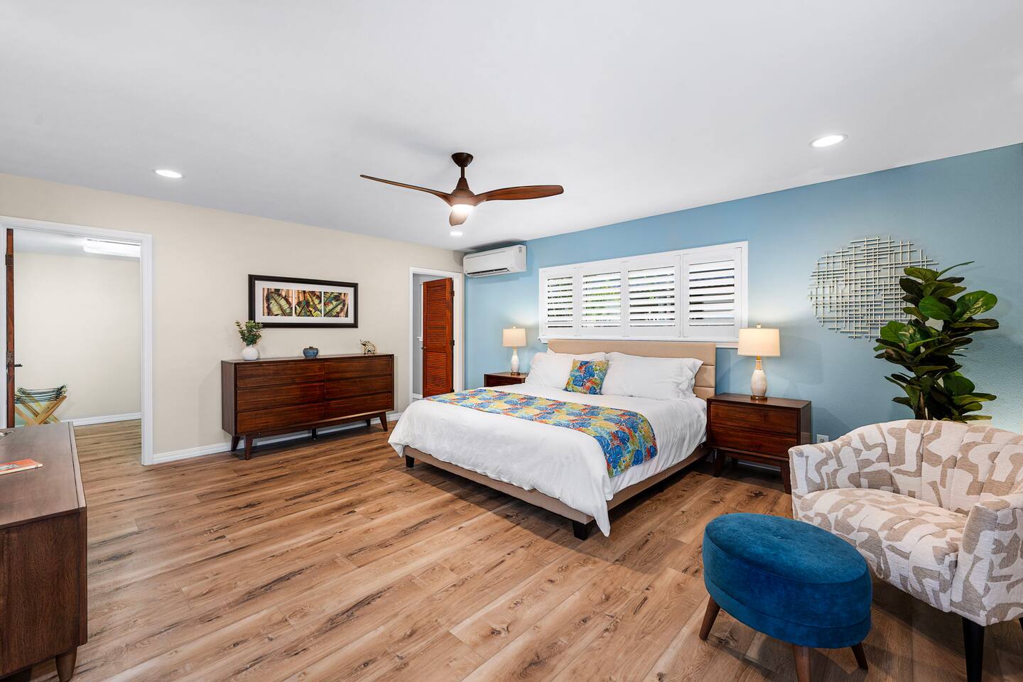 Superb Tropical Guest Villa - New in Oct 2025 with A/C - Just a six-minute stroll to Magic Sands Beach. It's very spacious - 1,895 sf & finely furnished with a Tropical Twist on Mid-Century Modern. You'll be so comfortable! Enjoy 2 Generous sized Bedrooms & 2 Full Baths. It's the retreat you deserve. Full Kitchen, Private Laundry, On-Site Parking. The Villa is One Level, No Stairs & First Floor. It's completely separate from the owner's upper floor residence - ensuring your exclusive experience.