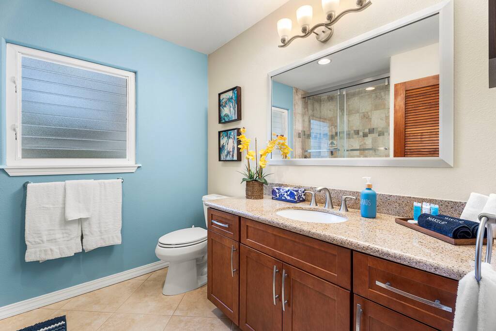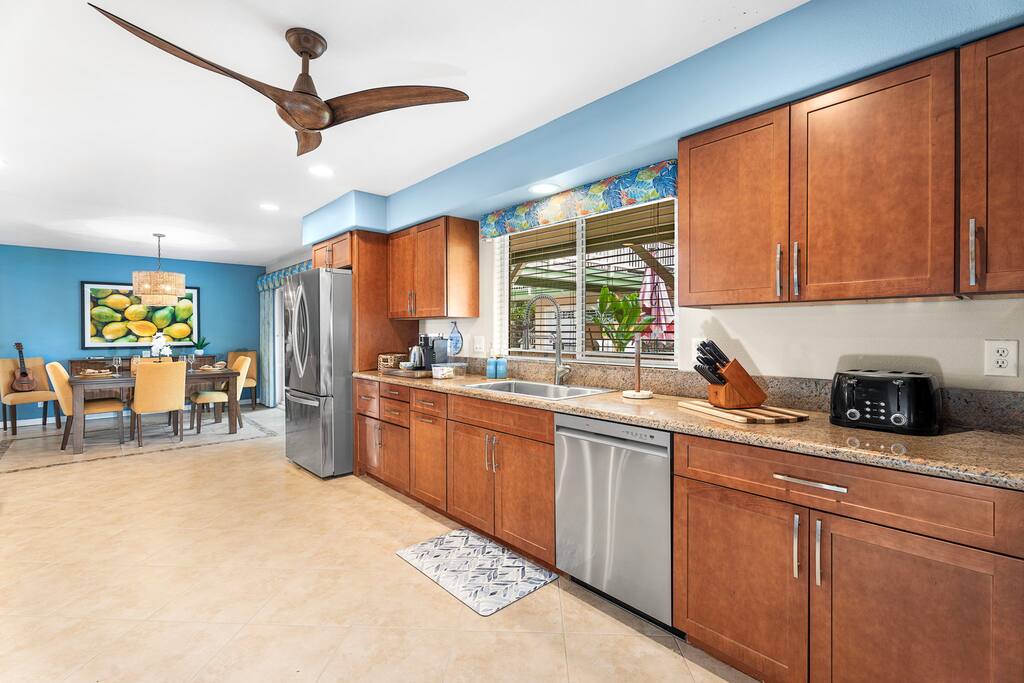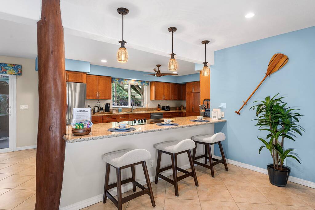 - Villa is One Level, No Stairs, First Floor - Private Entry - Fully Separated Space - Fresh & Newly Renovated Oct 2025 - 2BR & 2BA, Expansive 1,895 sqft - AC Zoned Split Systems - Primary Bedroom has Ensuite Bathroom - Primary Bath - Luxe Double Shower - Second Bath - Tub Shower Combo - Fully Equipped Chefs Kitchen - Five Burner 36" Cooktop - Full Size Convection Wall Oven - Built In Microwave Oven - Full Size Refrigerator Freezer - In Unit - Full Size Private Washer & Dryer - Private Garden Level Covered Patio - Private Propane Gas Grill - Private Outdoor Beach-Sand Shower - Eco Friendly Solar Electric & Hot Water - Beach Chairs, Umbrella & Snorkel Gear ** What to Know About the Villa - A fully private, lower floor guest space. - Ground level of a larger 2 story home. - Ideal choice for two couples. - Dedicated on-site parking for one vehicle. - Street parking for one additional vehicle. - Host resides in fully separate 2nd floor. - Does not have ocean views from Villa. **What to Know About the Location - Perfect central Kailua-Kona location. - Six minute stroll to Magic Sands Beach. - Minutes to ocean activities & snorkeling. - Car dependent. Hawaii public transit limited. - Real Hawaii neighborhood, not a resort. - Shopping & restaurants nearby. **What to Expect About Your Stay - A Five Star top quality experience. - Authentic local home accommodation. - Responsive, professional communication. - Neighborhood with people, kids & pets. - Hawaii beach climate with humidity. - A host with old school aloha & kindness. **What's Normal & Noticeable Here - Lizards, Geckos, Mongoose & Insects. - Neighborhood sounds, pets, cars & people. - Host upstairs, footsteps & 2 small dogs. - Resort quality without the resort. - Living aloha & being gracious. - A chorus of exotic birds singing at sunrise. - Active people living a relaxed lifestyle. **Your Host as a Resource We want your stay to be truly Five Star worthy. No one should ever travel all the way to Hawaii and experience disappointment. You deserve value. Consider us a local friend, ready to respond when you need us. Go ahead and message us with questions about beaches, restaurants, local insider knowledge or whatever you need. **Questions Your Host Can Help With - The Hawaii Quiet Hours Ordinance. - Info on Just About Everything Hawaii. - Hiking Trails Information. - Health & Wellness Resources. - National Park Info & Links. - Public Transportation Information. - Bike, Kayak & Surfboard Rental. - See our detailed Guide Book for more!