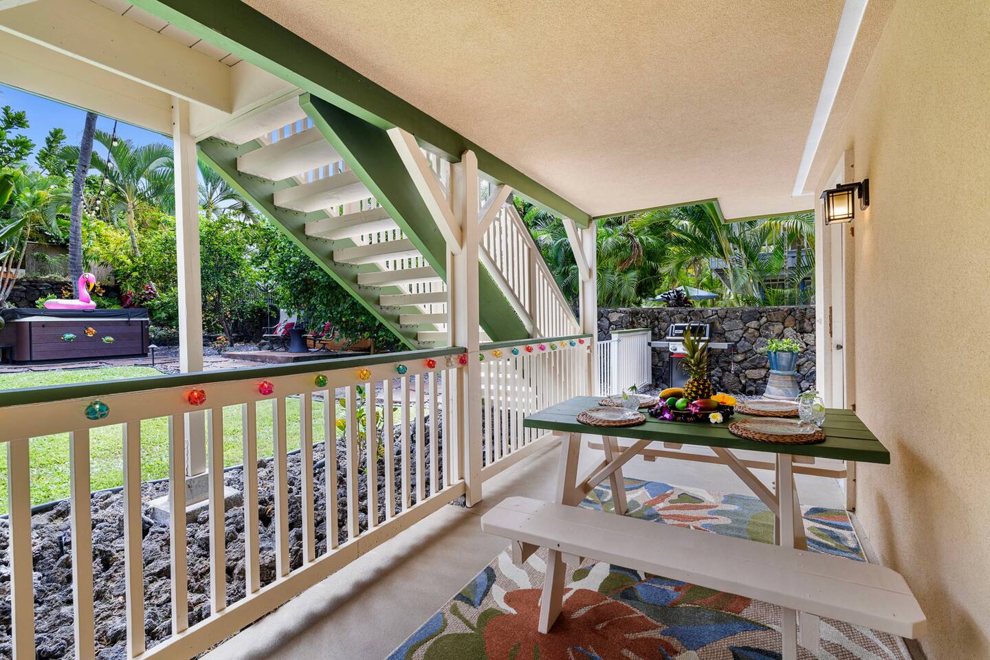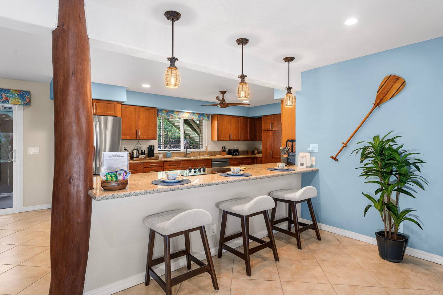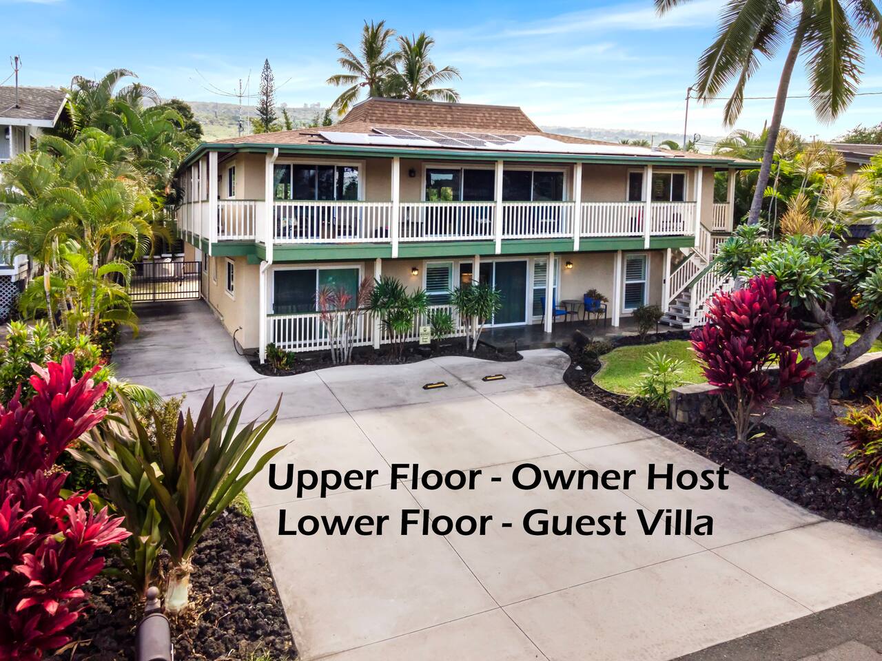 - Villa is One Level, No Stairs, First Floor - Private Entry - Fully Separated Space - Fresh & Newly Renovated Oct 2025 - 2BR & 2BA, Expansive 1,895 sqft - AC Zoned Split Systems - Primary Bedroom has Ensuite Bathroom - Primary Bath - Luxe Double Shower - Second Bath - Tub Shower Combo - Fully Equipped Chefs Kitchen - Five Burner 36" Cooktop - Full Size Convection Wall Oven - Built In Microwave Oven - Full Size Refrigerator Freezer - In Unit - Full Size Private Washer & Dryer - Private Garden Level Covered Patio - Private Propane Gas Grill - Private Outdoor Beach-Sand Shower - Eco Friendly Solar Electric & Hot Water - Beach Chairs, Umbrella & Snorkel Gear - High Chair & Pack-n-Play Crib Available ** What to Know About the Villa - A fully private, lower floor guest space. - Ground level of a larger 2 story home. - Ideal choice for two couples. - Dedicated on-site parking for one vehicle. - Street parking for one additional vehicle. - Host resides in fully separate 2nd floor. - Does not have ocean views from Villa. **What to Know About the Location - Perfect central Kailua-Kona location. - Six minute stroll to Magic Sands Beach. - Minutes to ocean activities & snorkeling. - Car dependent. Hawaii public transit limited. - Real Hawaii neighborhood, not a resort. - Shopping & restaurants nearby. **What to Expect About Your Stay - A Five Star top quality experience. - Authentic local home accommodation. - Responsive, professional communication. - Neighborhood with people, kids & pets. - Hawaii beach climate with humidity. - A host with old school aloha & kindness. **What's Normal & Noticeable Here - Lizards, Geckos, Mongoose & Insects. - Neighborhood sounds, pets, cars & people. - Host upstairs, footsteps & 2 small dogs. - Resort quality without the resort. - Living aloha & being gracious. - A chorus of exotic birds singing at sunrise. - Active people living a relaxed lifestyle. **Your Host as a Resource We want your stay to be truly Five Star worthy. No one should ever travel all the way to Hawaii and experience disappointment. You deserve value. Consider us a local friend, ready to respond when you need us. Go ahead and message us with questions about beaches, restaurants, local insider knowledge or whatever you need. **Questions Your Host Can Help With - The Hawaii Quiet Hours Ordinance. - Info on Just About Everything Hawaii. - Hiking Trails Information. - Health & Wellness Resources. - National Park Info & Links. - Public Transportation Information. - Bike, Kayak & Surfboard Rental. - See our detailed Guidebook for more!